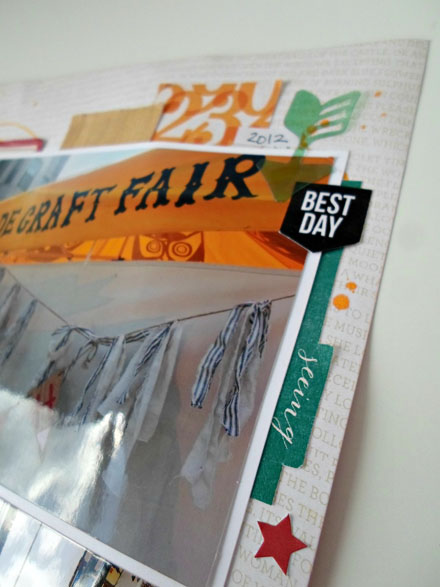 I used a combination of printables, stickers, and die cuts to embellish the page. The sentiment below is actually a 3x4 journaling card cut out from Simple Stories. I couldn't resist adding it to the page in place of the four flags the sketch called for.